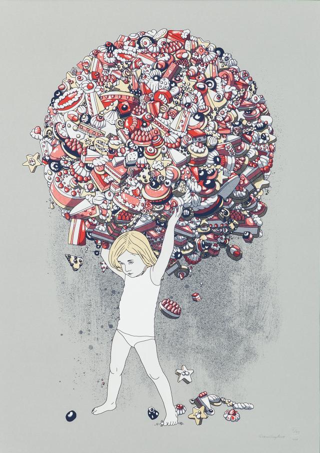 Die Arbeiten stehen unter dem Thema Kindheit und Jugend und bringen uns durch das Betrachten selbst an die Erinnerungsorte unserer Kindheit. Sei es der Spielplatz hinter dem Neubaublock in Halle-Neustadt, der abgeranzte Wohnblock in Berlin oder das genormte Flachdacht-Einfamilienhaus. All diese Plätze nutzten wir zum Spielen, später wurden die ersten Sprayversuche mit der Dose hier durchgeführt. So gibt KLUB7 uns die Chance Kindheit und Jugend generationsübergreifend zu betrachten. Durch das Holz, die Leinwand oder das Papier sehen wir die Kindheitserinnerungen der Künstler zu neuem Leben erwachen.