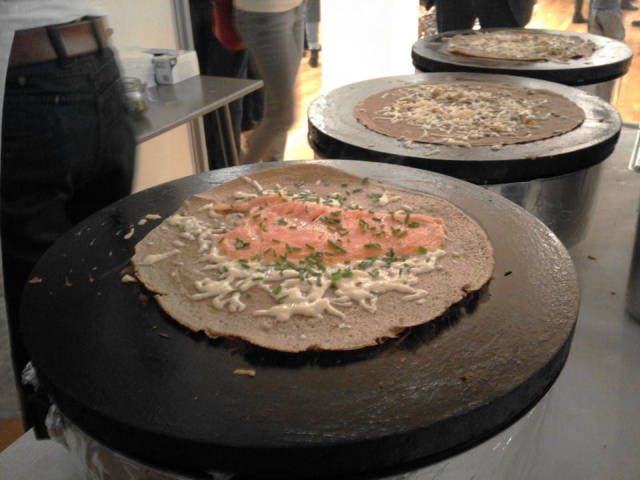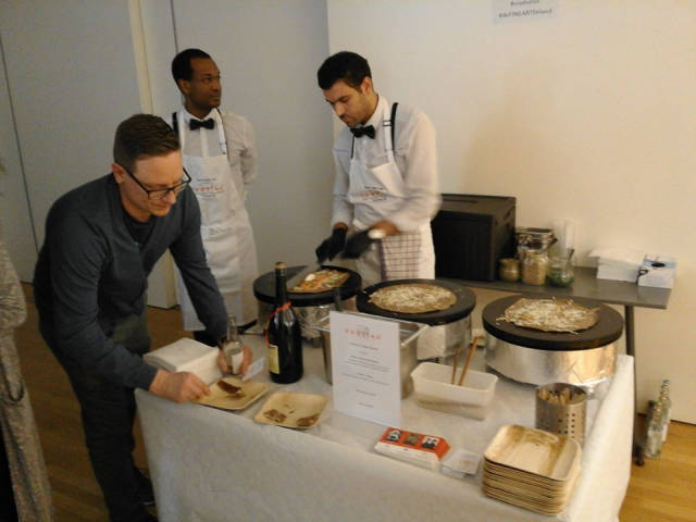 Es wurden Galettes mit Lachs, Gouda und Crème Fraîche, Spinat-Crostini und Saitan-Wraps mit Weißkohl, roter Beete und cremigen Dip serviert. Allesamt köstlich, allesamt intelligent zusammengestellte, experimentierfreudige Gerichte.